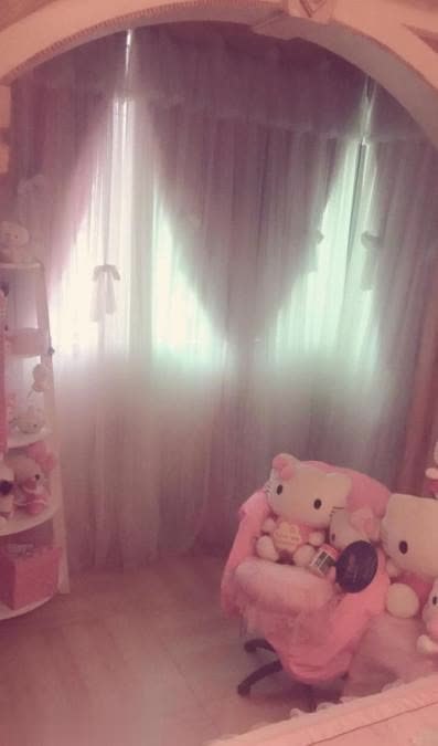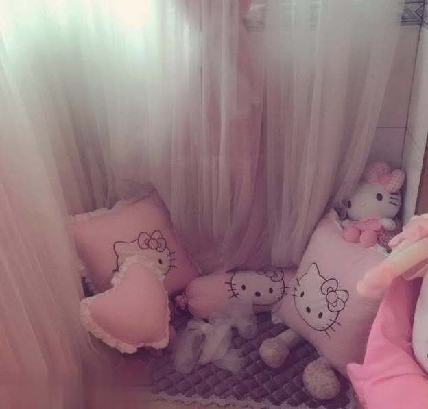 阳台边缘有一堆漂亮的Kitty抱枕,地上还铺了垫子,没事时我可爱窝在这个边缘玩手机
