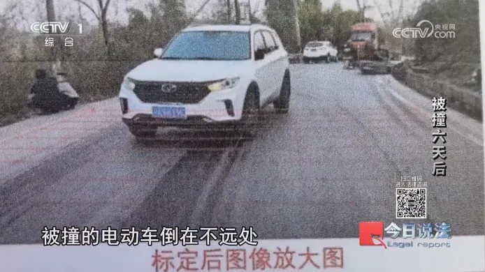 那天,曾庆前骑着电瓶车载着老婆李欣去赶场,回想的路上,在一处急弯与对向借谈超车的汽车发生了剐蹭,事故发生后,交警飞速赶到现场。因为仅仅剐蹭,两辆车的受损情况并不严重,事故现场像片骄气,闯祸小轿车左侧反光镜毁损,曾庆前的电动车倒在不远方。