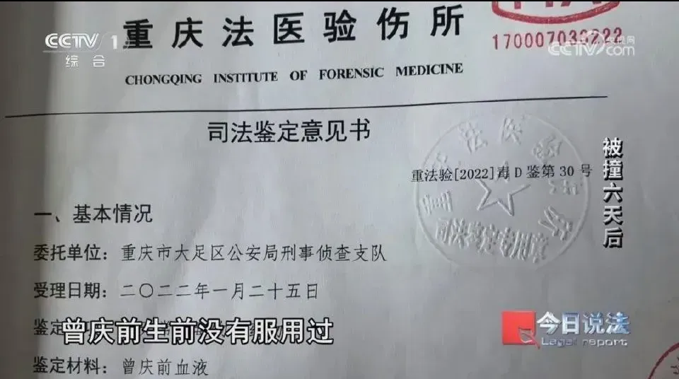 过程尸检,2022年3月,重庆法医验伤所给出了已然抵制:已然主张为曾庆前得当动脉粥样硬化主动脉夹层闹翻,出血引起呼吸循坏枯竭死一火;曾庆前背部挫伤得当其死一火的诱发或促进身分,曾庆前背部挫裂伤及主动脉内膜损害的时代为死一火前3至6天。