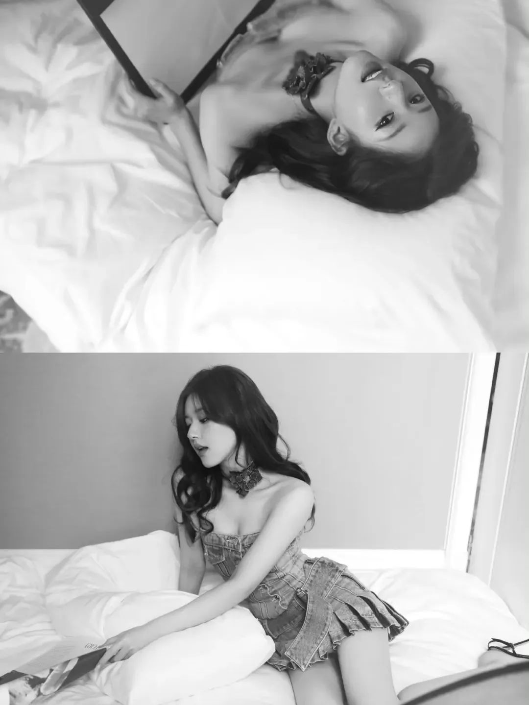 想要完成这种纯欲小辣椒作风,穿搭上的加减法就要作念好。纯色莽撞大色块就比零乱的印花更显干净,项目也无谓太夸张,少量点小脾气配基础款单品就有余督察纯欲,增大少量露肤度则更辣。