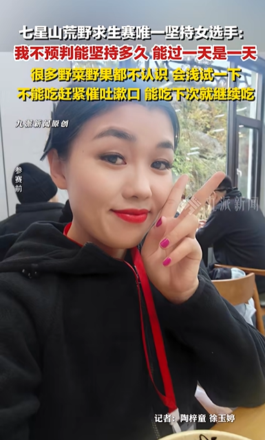 近日,七星山杯百东谈主原野求生挑战赛在张家界举行,选手需在顶点环境下进行生涯历练。已有选手因恶劣天气暂停四肢,场上独一坚合手下来的女选手“冷好意思东谈主”备受柔软。