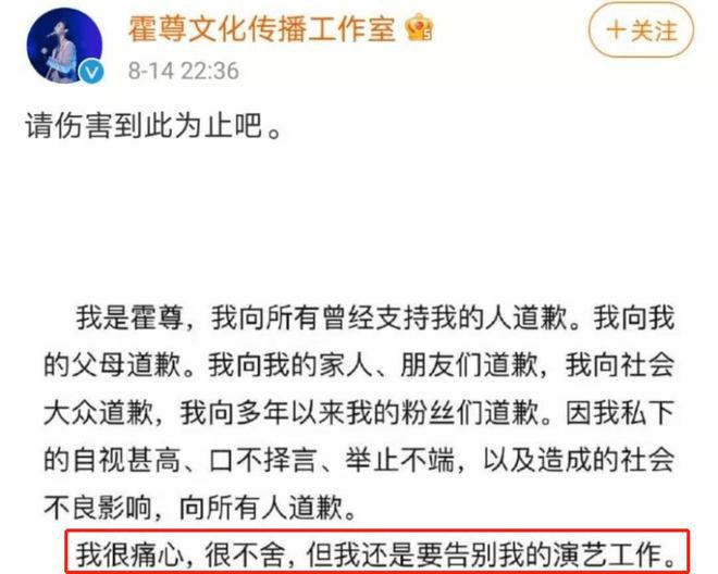 面临这种情况,霍尊最终取舍了发文宣布退出文娱圈。